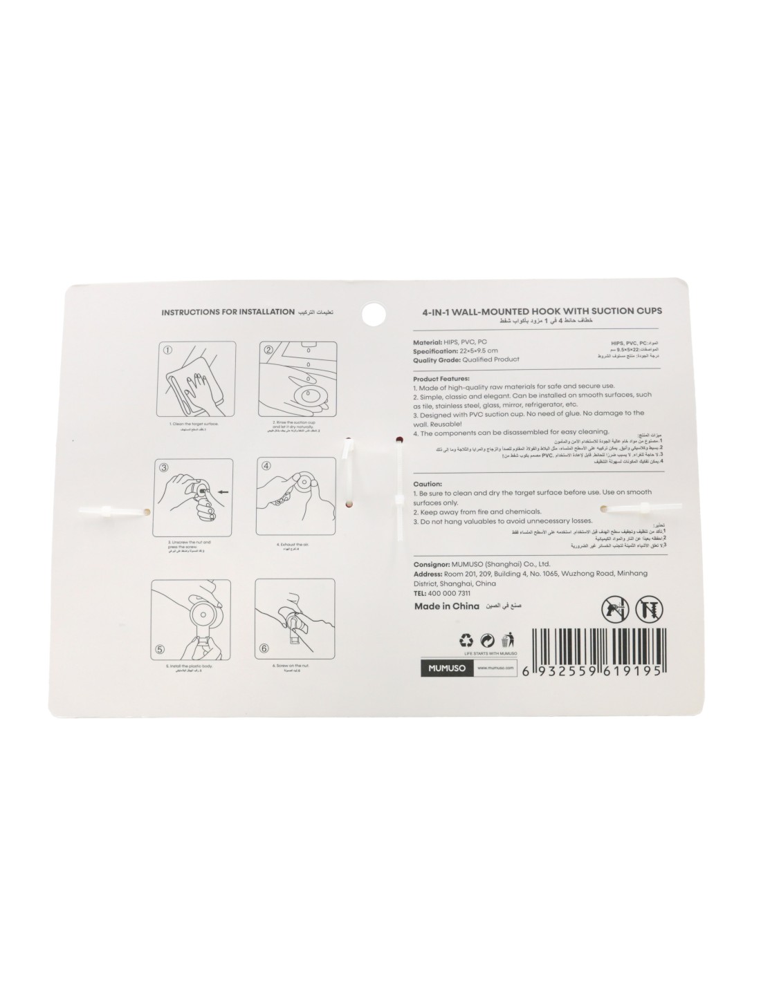 Crochet Mural 4-en-1 avec Ventouse