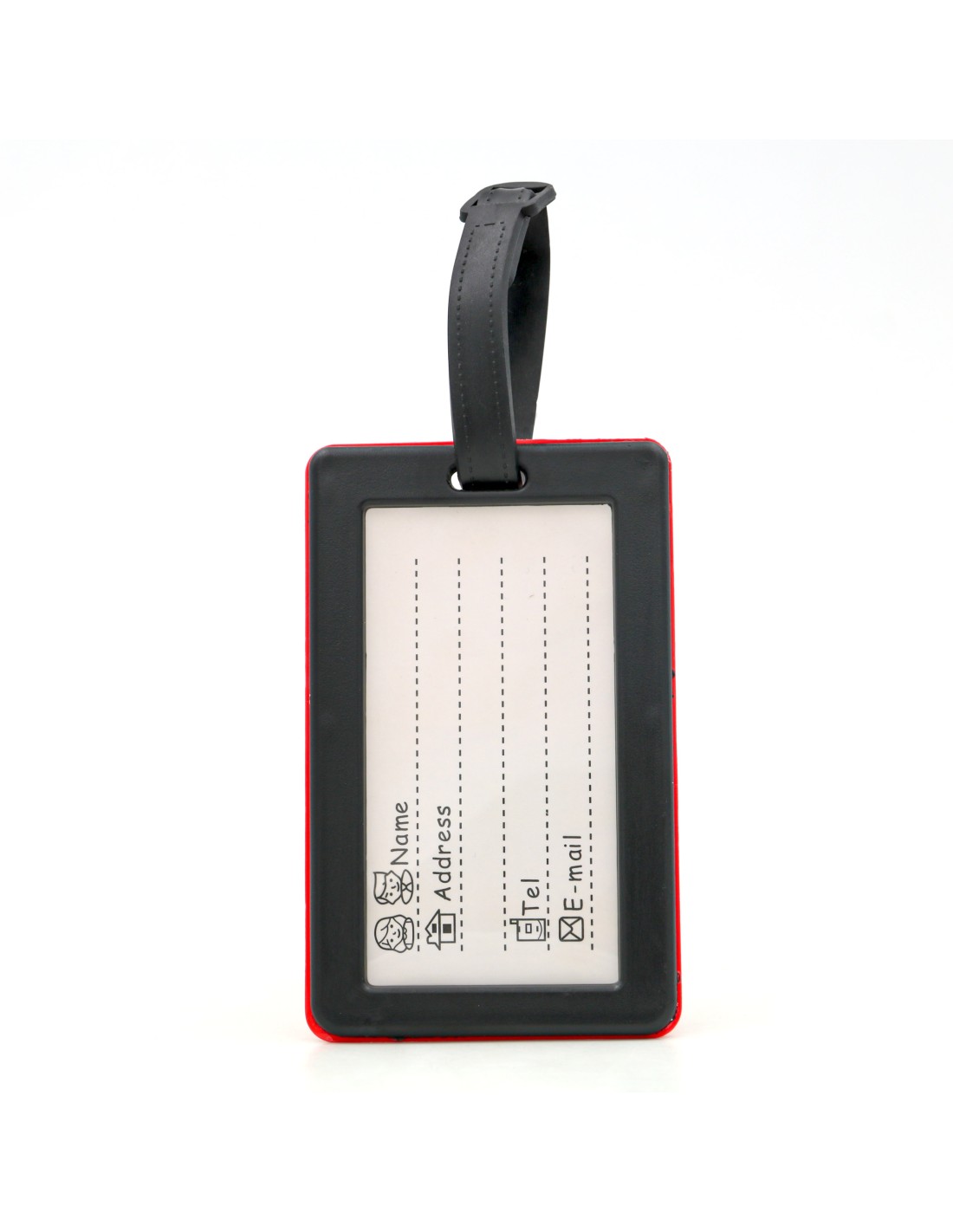 Insérez votre carte de visite ou juste remplir au stylo l'étiquette avec vos informations dans le compartiment transparent, puis fixez fermement l'étiquette à l'anse de votre valise ou sac à dos à l'aide de son lien renforcé.