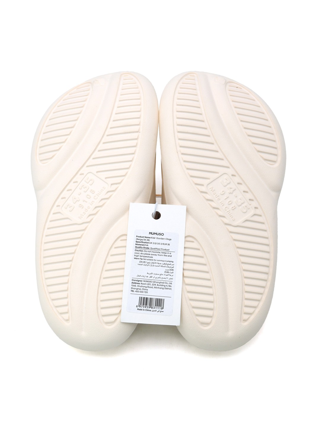 Les sabots MUMUSO pour enfant en pointure 34-35 allient légèreté, confort et praticité pour les petits pieds actifs. Conçus en EVA, une matière souple, résistante et imperméable, ils sont parfaits pour les sorties, la plage ou les journées de jeu. Le design beige est rehaussé de petites lettres personnages rigolos pour plaire aux plus jeunes, tandis que la bride pivotante au talon permet un bon maintien selon les besoins. Respirants grâce à leurs perforations, ils se lavent et sèchent facilement : un choix pratique et stylé pour les enfants !