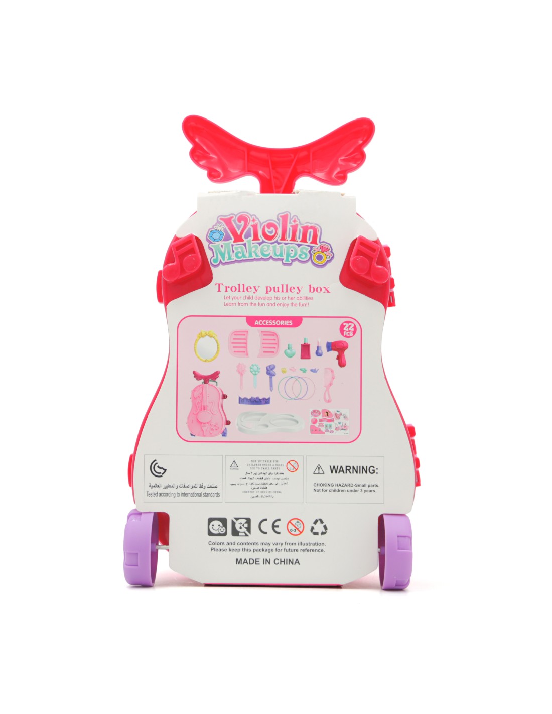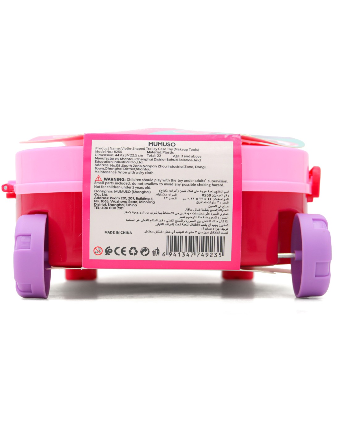 Cette valise à roulettes en forme de violon est bien plus qu'un simple jouet. Elle contient tout un ensemble de maquillage pour enfants ainsi que de nombreux accessoires pour cheveux : peigne, miroir, flacons, et bien d'autres surprises. Conçue pour éveiller la créativité et développer les capacités motrices et imaginatives des petits, elle permet d'apprendre en s'amusant. Les enfants adorent la transporter partout grâce à ses roulettes intégrées. Parfaite pour les jeux de rôle, les goûters entre copines ou comme cadeau d'anniversaire. À utiliser sous surveillance adulte (contient petites pièces).