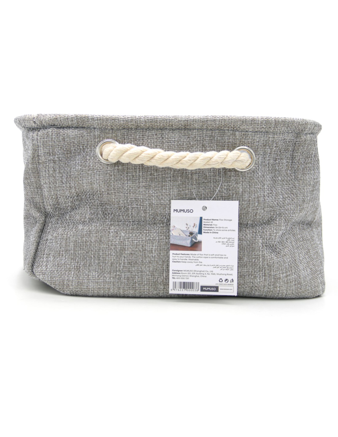 Grâce à ses dimensions généreuses (36 × 26 × 16 cm), il permet de ranger facilement divers articles : vêtements, linge, jouets, accessoires, magazines ou objets du quotidien. Ses anses en corde de coton assurent une prise en main confortable et facilitent le transport.