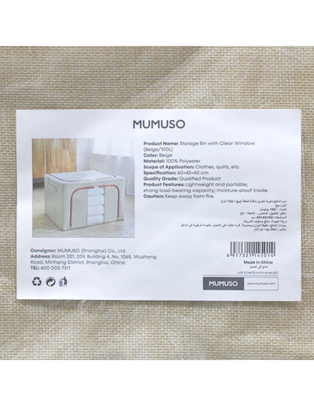 La Storage Bin avec Fenêtre Transparente – 100L est la solution idéale pour organiser efficacement votre intérieur tout en gardant une visibilité immédiate sur son contenu. Conçue en polyester 100 %, elle est à la fois légère, résistante et durable, parfaite pour un usage quotidien.