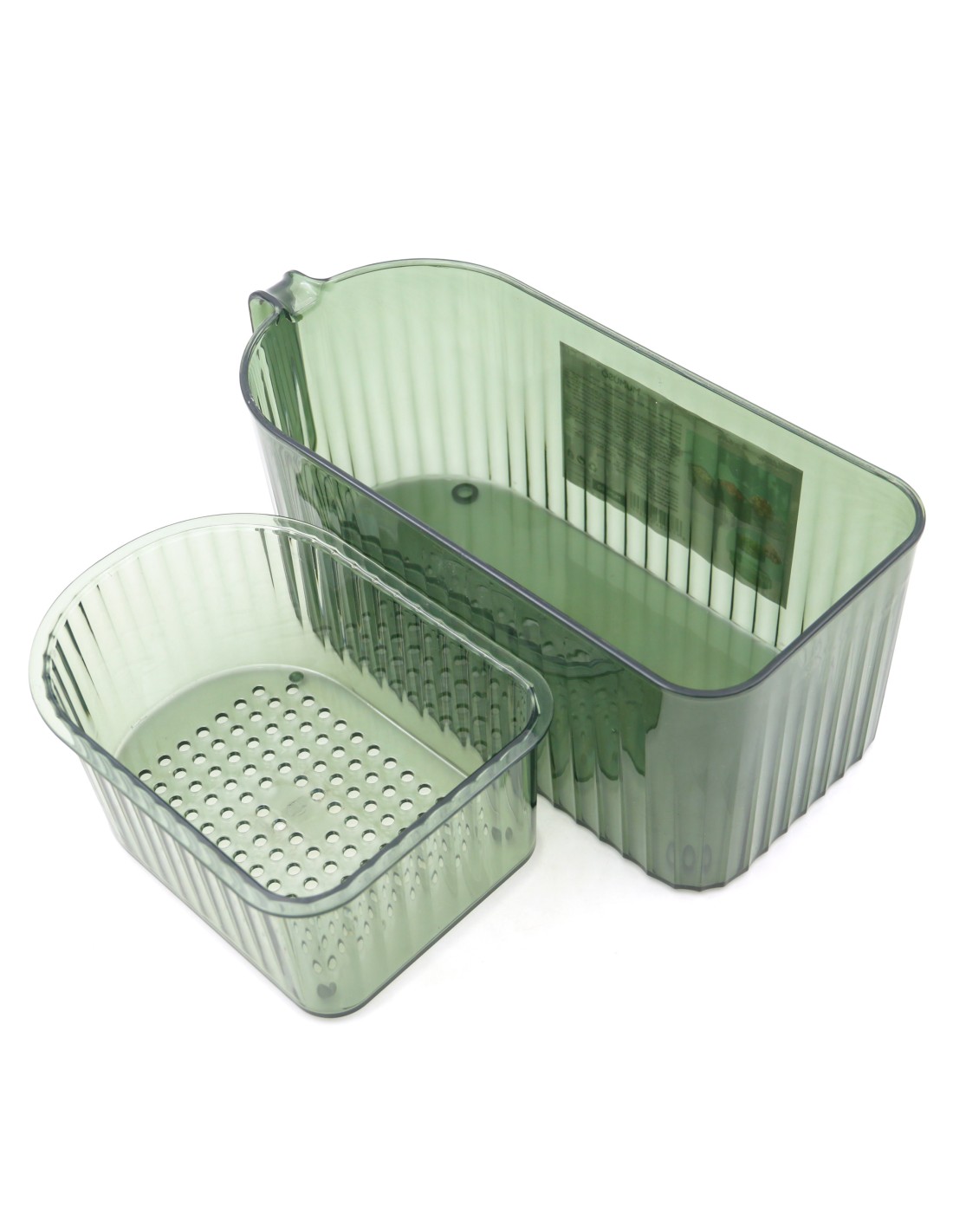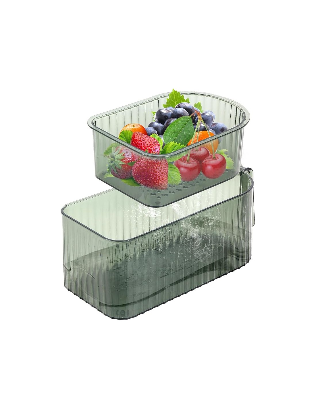 Réinventez la présentation de vos fruits avec cette corbeille à fruits design à double étage. Fabriquée en PET résistant et transparent, son étage supérieur alvéolé et amovible vous permet d'égoutter facilement les petits fruits après lavage ou de séparer les différentes variétés. L'étage inférieur, au fond surélevé, assure stabilité et protection de vos plans de travail. Son design tout en courbes et aux angles arrondis en fait un accessoire sûr à manipuler, tandis que sa poignée intégrée facilite le transport. Pratique et polyvalente, elle peut également accueillir snacks, biscuits ou même servir de rangement esthétique.