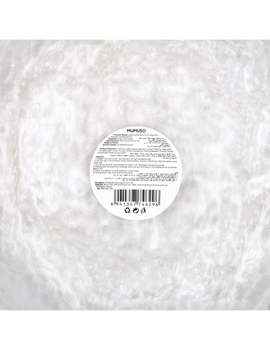 Servez vos salades et préparations avec une élégance rare. Ce saladier en verre au motif ondulé ( de diamètre 19,5 cm) comme l'eau et à la bordure dorée peinte à la main transforme votre table en une véritable scène de festin.
