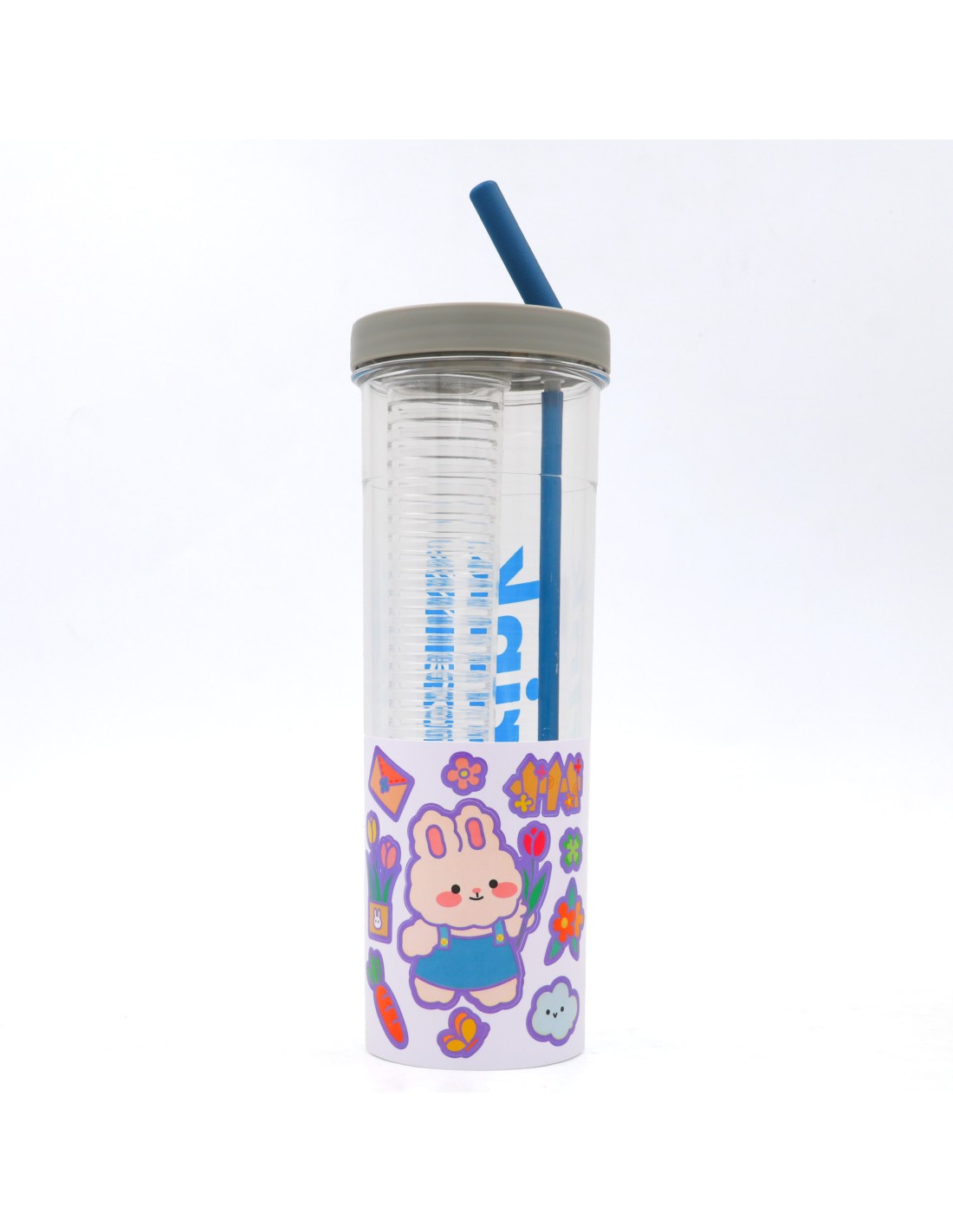 Bouteille D'Eau en Plastique avec Paille Pliable et Infuseur (Bleu/700 Ml)