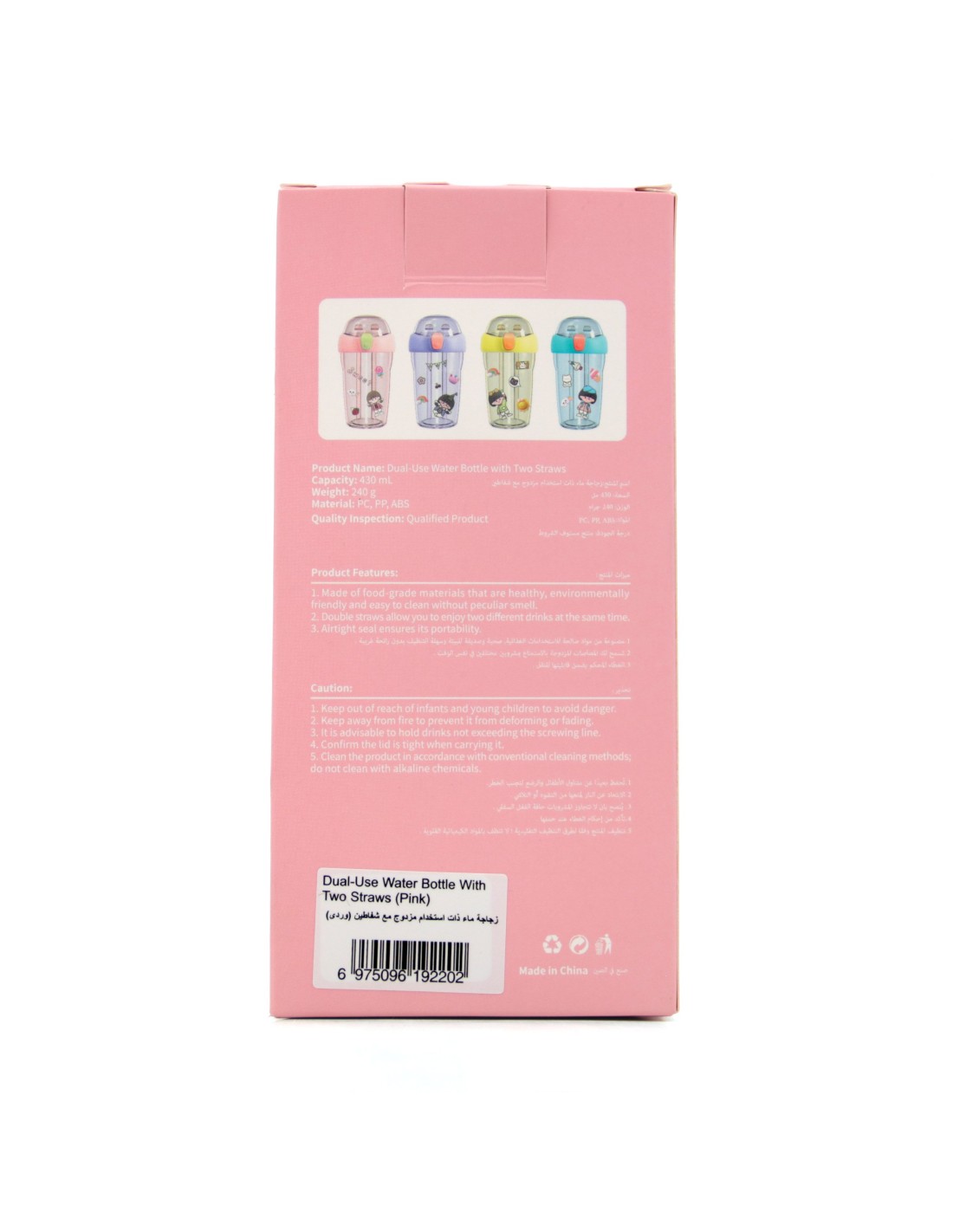 Gourde 2-en-1 avec Double Paille – 430 mL (Violet)