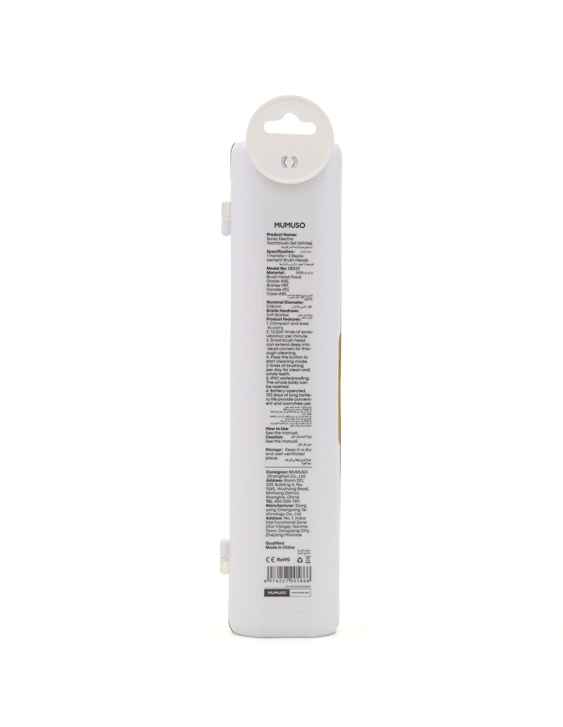 Facile à utiliser, il suffit d'appuyer sur le bouton pour démarrer. La brosse est IPX5 : vous pouvez la passer sous l'eau pour la nettoyer entièrement sans risque. Elle fonctionne sur piles avec une autonomie impressionnante de 120 jours, soit environ 4 mois d'utilisation en se brossant deux fois par jour.