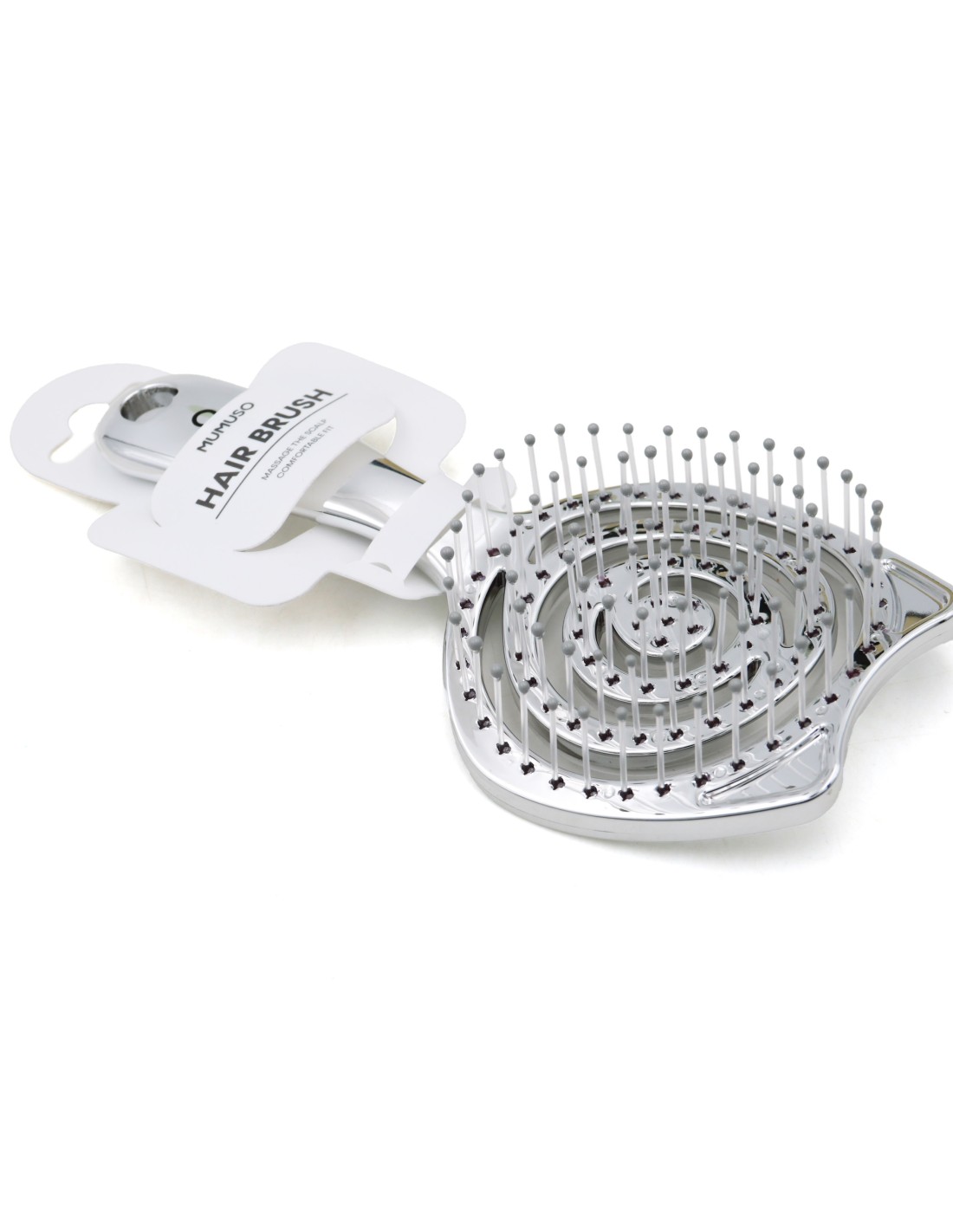 Brosse à Cheveux Argentée avec Oreilles de Chat