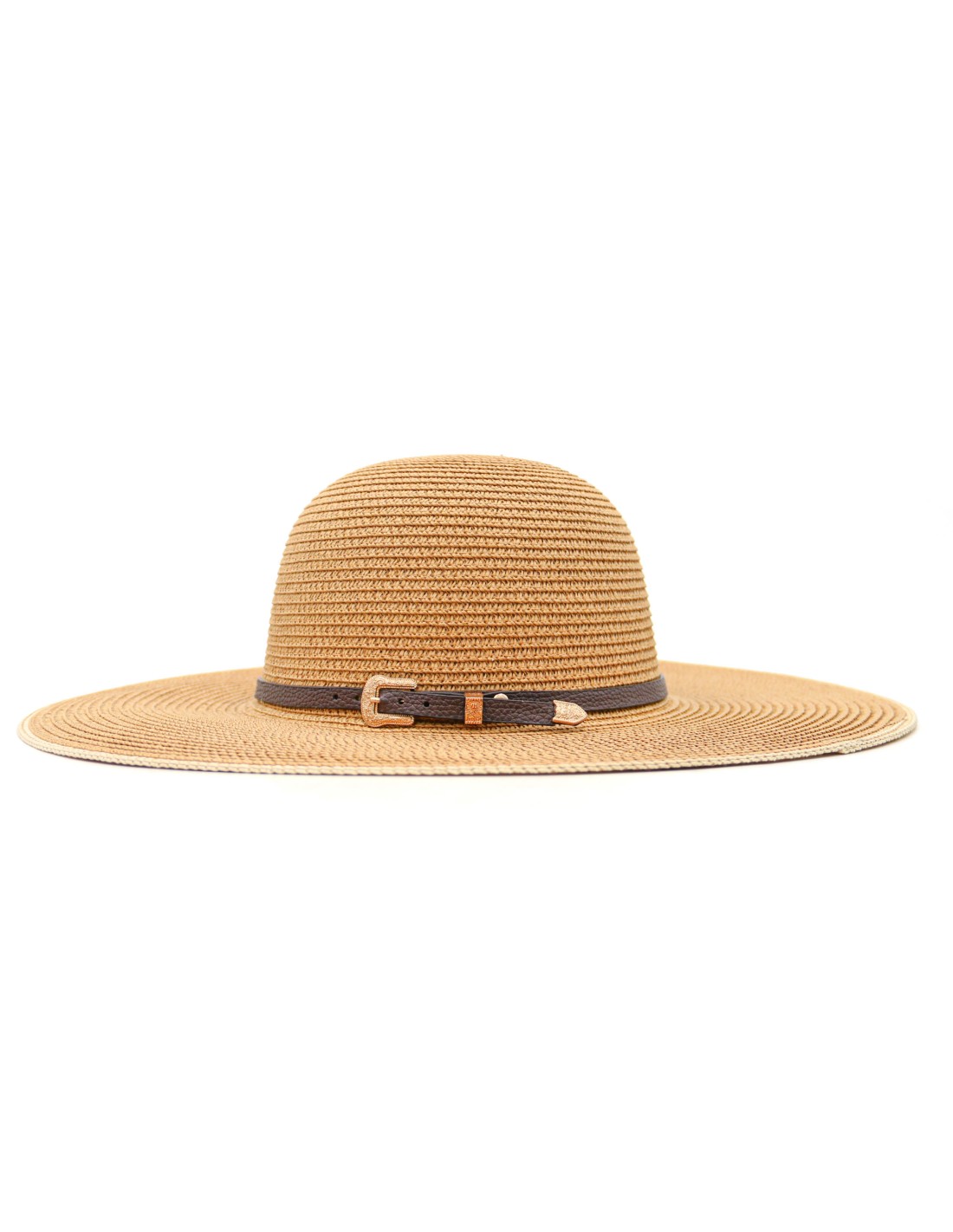 Chapeau de Paille à Large Bord avec Lanière en Cuir (Marron)