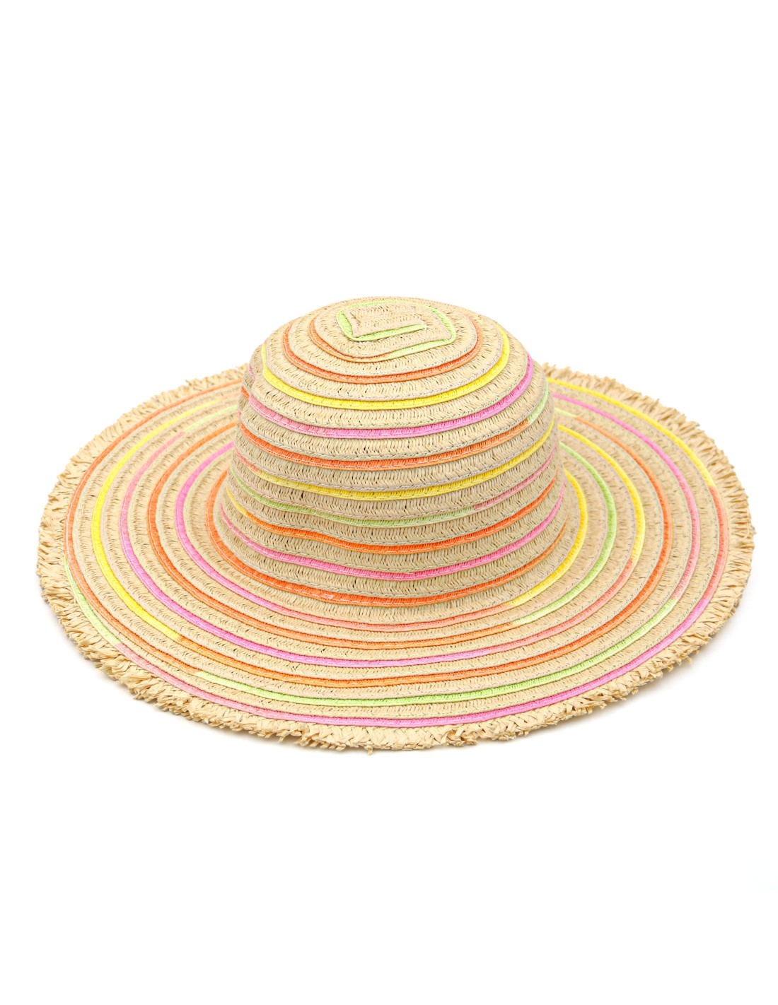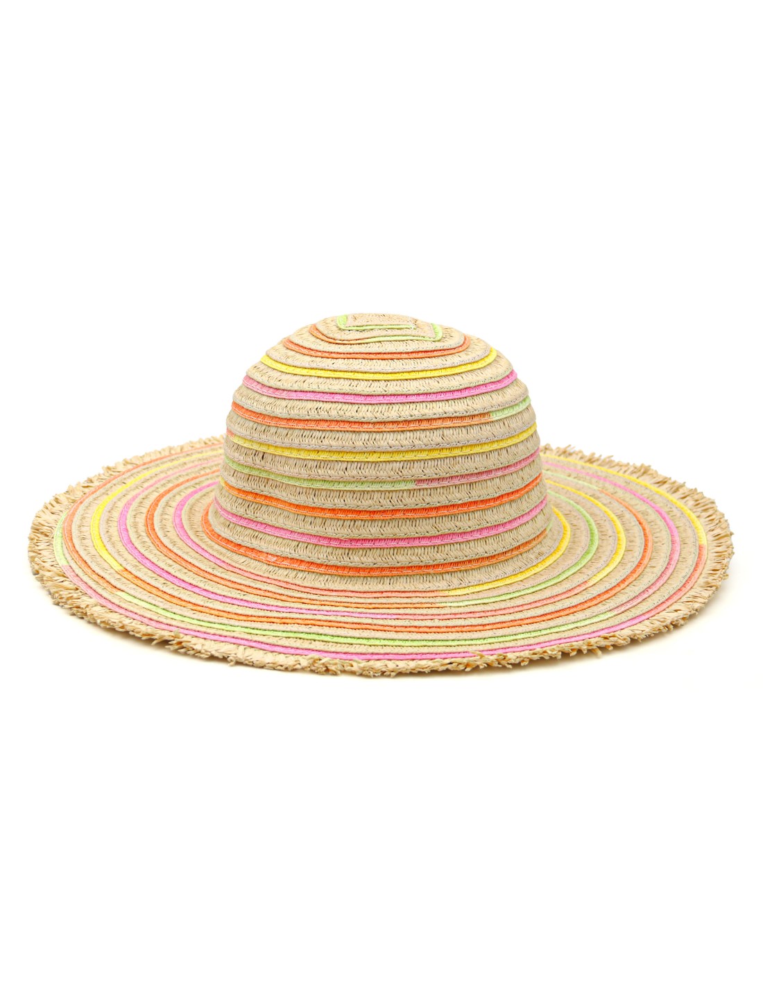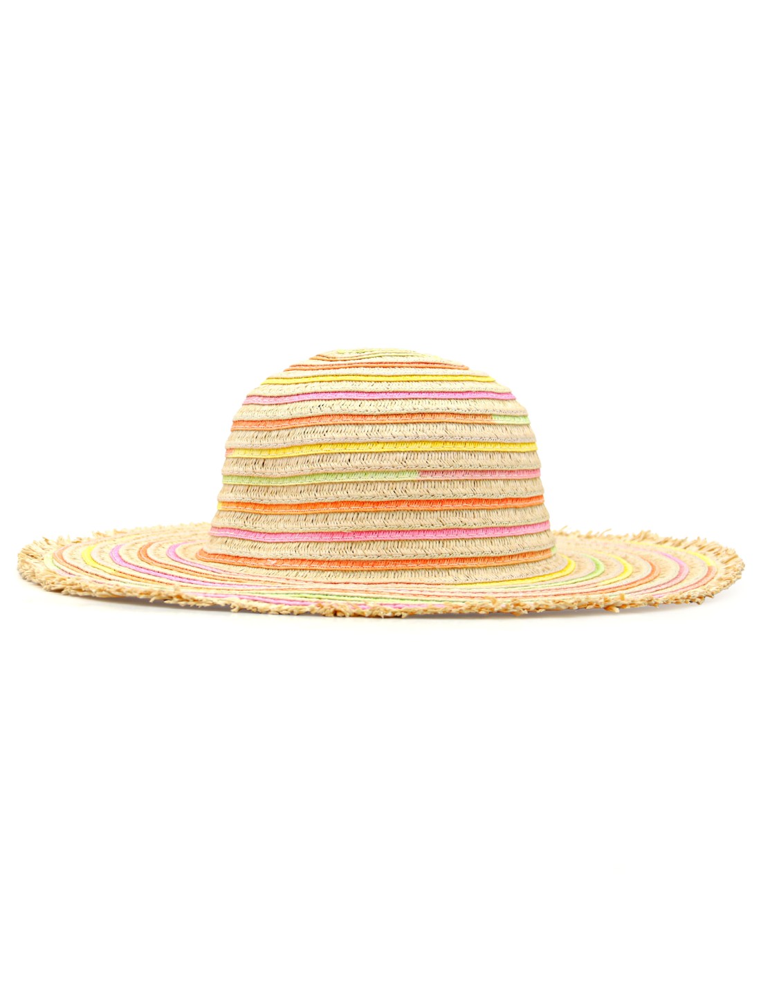 Un chapeau féminin tendance et léger pour vous accompagner durant tout cet été. En 100% paille, vous allez adorer le porter sur la plage ou ailleurs ! Ce modèle dispose de larges bords souples rayés de plusieurs couleurs pastel, avec des franges très fines, permettant ainsi de bien protéger votre tête ainsi que votre visage du soleil. Doté d'un Serre-tête : un ruban réglable qui permet d'ajuster la circonférence intérieure du chapeau.