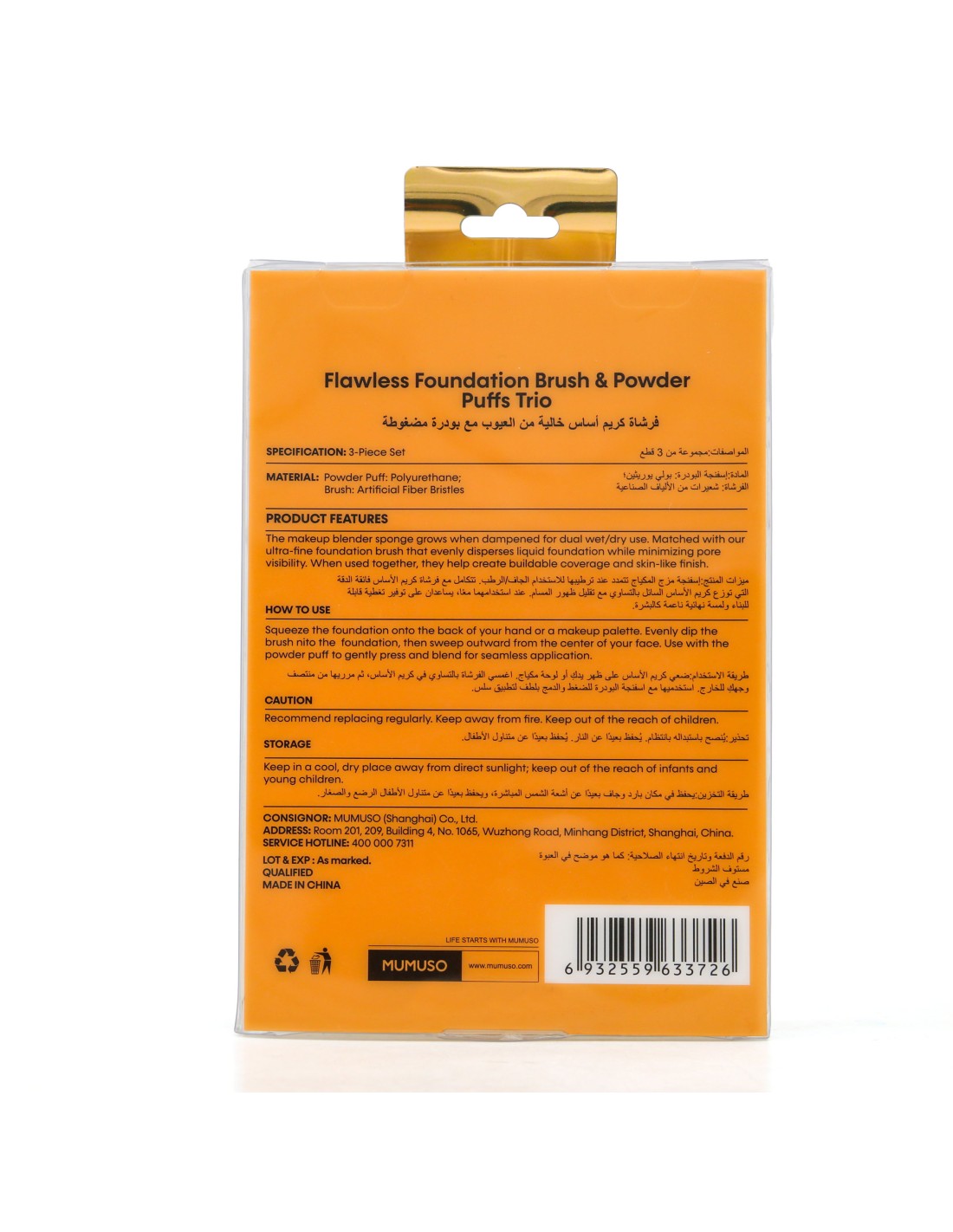 Golden Collection Kit Maquillage Pro 3-en-1 : Brosse Fond de Teint Précision + 2 Eponges Poudre