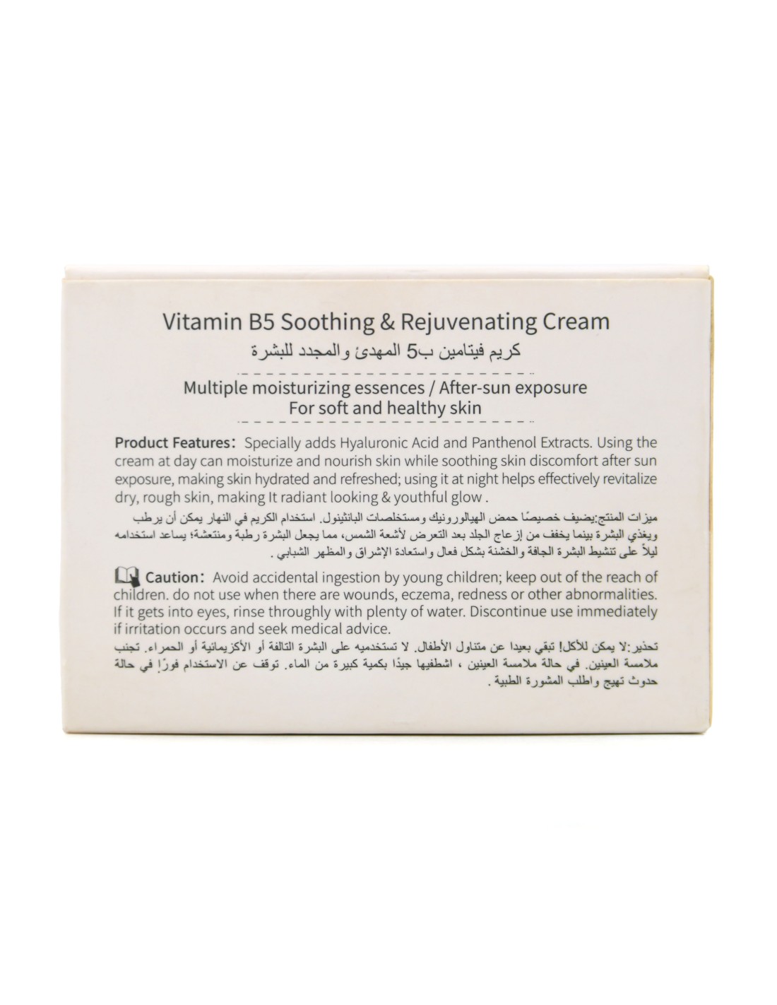 Notre crème de soin à la vitamine B5 combine les bienfaits de l'Acide Hyaluronique et des extraits de Panthénol pour une hydratation en profondeur. Appliquée durant la journée, elle nourrit et apaise les inconforts cutanés causés par l'exposition au soleil, laissant la peau fraîche et éclatante. Utilisée la nuit, elle revitalise efficacement les peaux sèches et rugueuses, pour une peau douce, lumineuse et visiblement rajeunie au réveil.