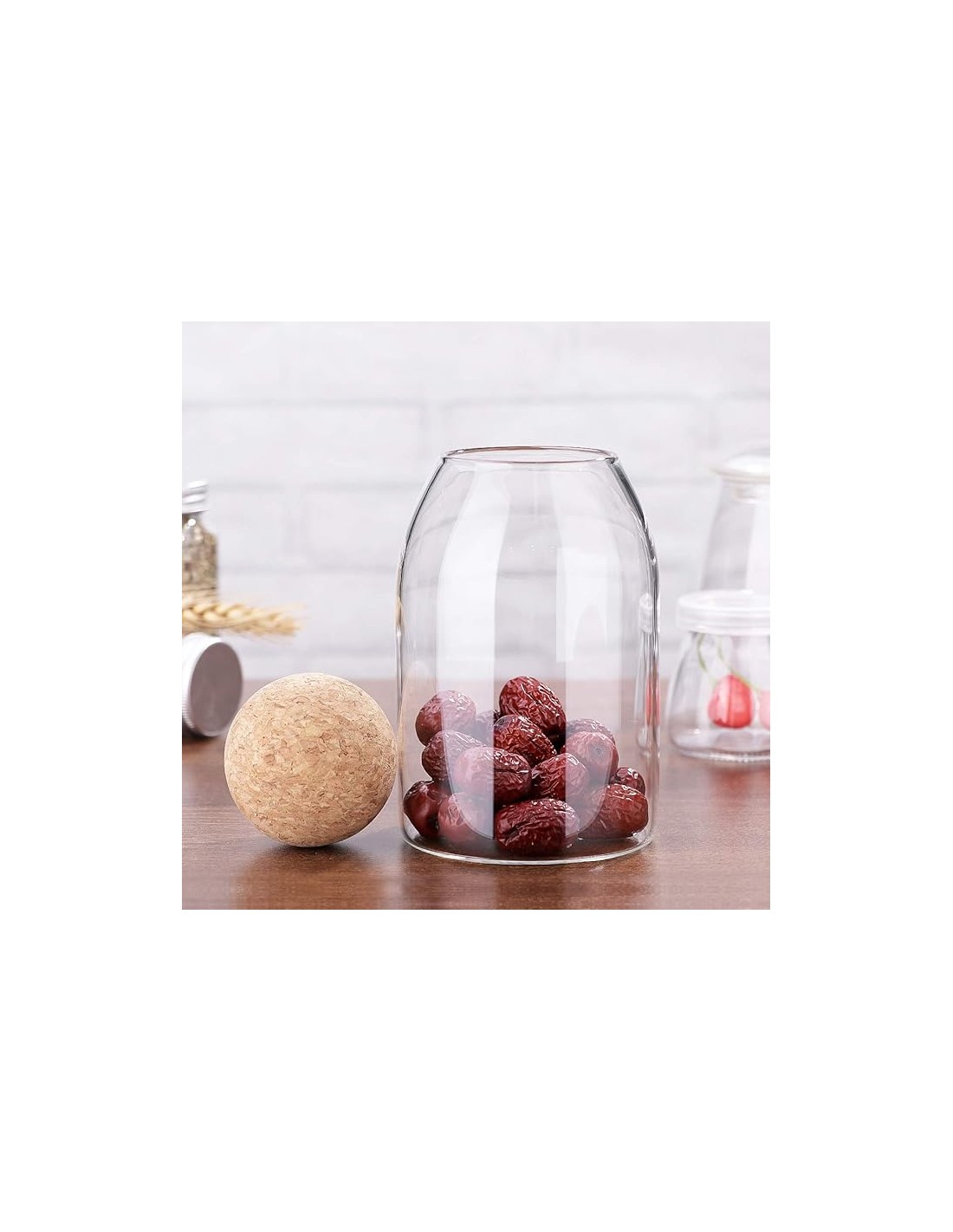 Le bouchon rond en liège massif n'est pas qu'un simple obturateur. Sa forme sphérique, agréable à saisir, apporte une touche de design organique et chaleureux. Avec le temps, le liège épouse parfaitement le col du bocal, créant une fermeture hermétique qui préserve la fraîcheur et les arômes de votre contenu. Fini l'air qui altère le café ou l'humidité qui ramollit les biscuits.