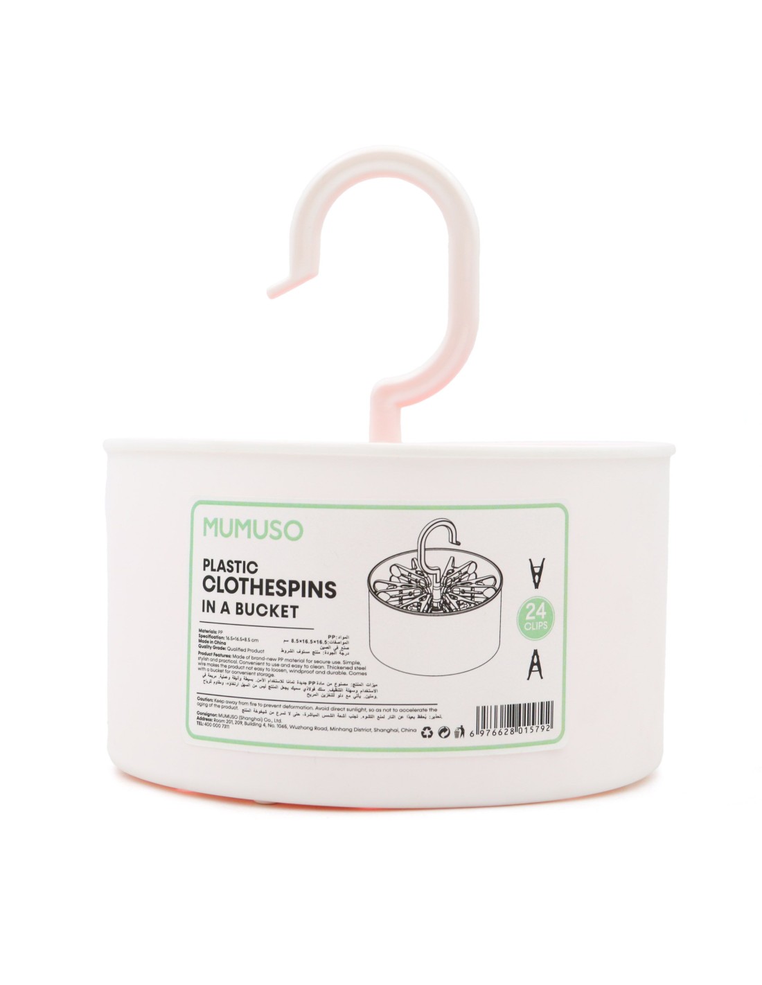Optimisez votre espace et votre temps avec ce set complet de pinces à linge. Les 24 pinces sont fabriquées en plastique résistant aux intempéries et équipées d'un ressort en acier robuste pour une fixation puissante et durable sur la corde à linge, en intérieur comme en extérieur. Leur design classique et leur ouverture facile les rendent parfaites pour le linge, mais aussi pour une multitude d'usages domestiques : fermer des paquets alimentaires, organiser des câbles, réaliser des bricolages ou suspendre des décorations. Le tout est fourni dans un seau en plastique réutilisable (16.5x16.5x8.5 cm) muni d'un crochet intégré, permettant un rangement compact, un transport aisé et une accroche directe à votre étendoir.