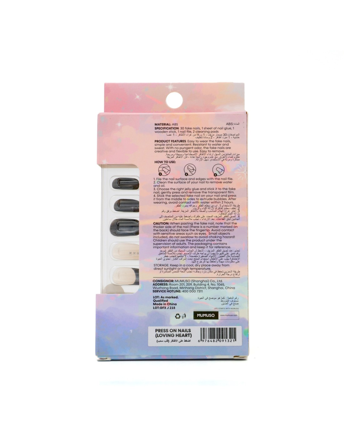 Les avantages des faux ongles de MUMUSO : Économiques et écologiques, nos faux ongles sont réutilisables. Fini les grosses sommes dépensées chez l’esthéticienne tous les mois ! Adaptés à votre mode de vie, vous pouvez les garder le temps d’une soirée ou plus, c’est vous qui choisissez ! Rapide et très simple, la pose est très simple et se fait en quelques minutes. Respectueuse de votre santé, la pose n’abîme pas vos ongles naturels et évite l’accumulation de bactéries sous les ongles du au port prolongé . Pratique, vous pouvez les emporter partout où vous voulez !