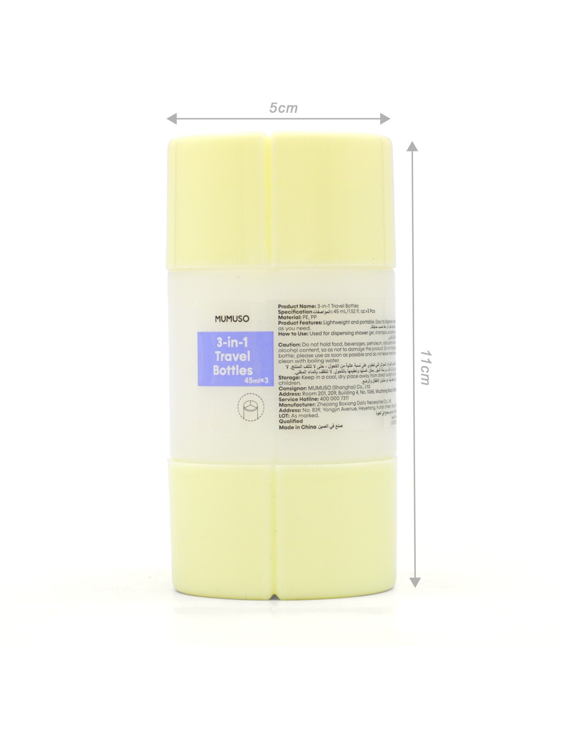 Conçus pour les nomades modernes, les voyageurs, les aventuriers, les sportifs, nos flacons de voyage 3 en 1 allient fonctionnalité et durabilité. Leurs parois en PE et PP résistantes préservent l’intégrité de vos produits, tandis que leurs bouchons sécurisés préviennent les fuites. Chaque flacon de 45 mL est suffisamment spacieux pour vos gels douche, shampoings, crèmes solaires ou lotions, et s’utilise seul ou avec les autres selon vos besoins. Leur design compact et leur poids plume en font les compagnons idéaux pour les weekends, les salles de sport ou les voyages longue durée.