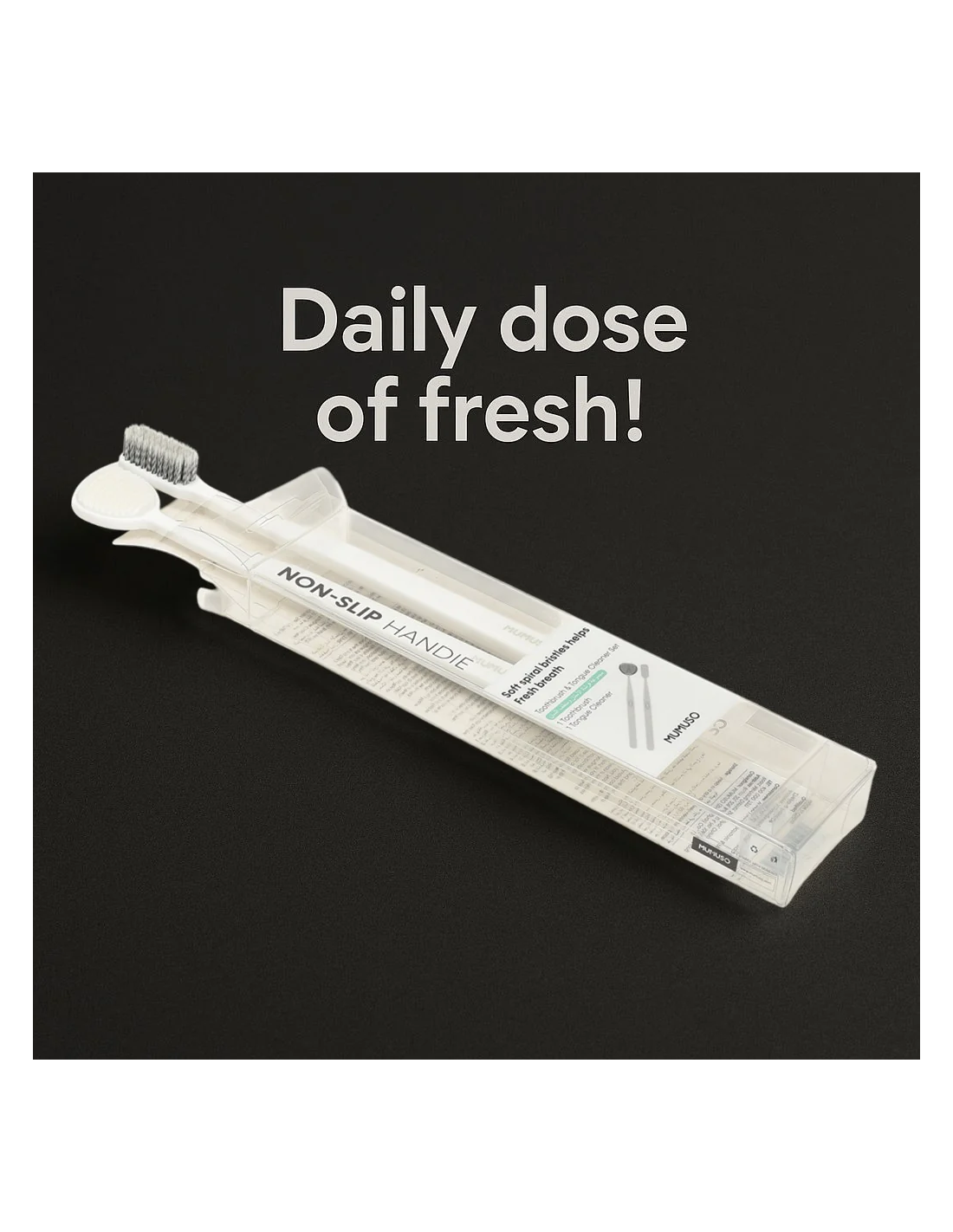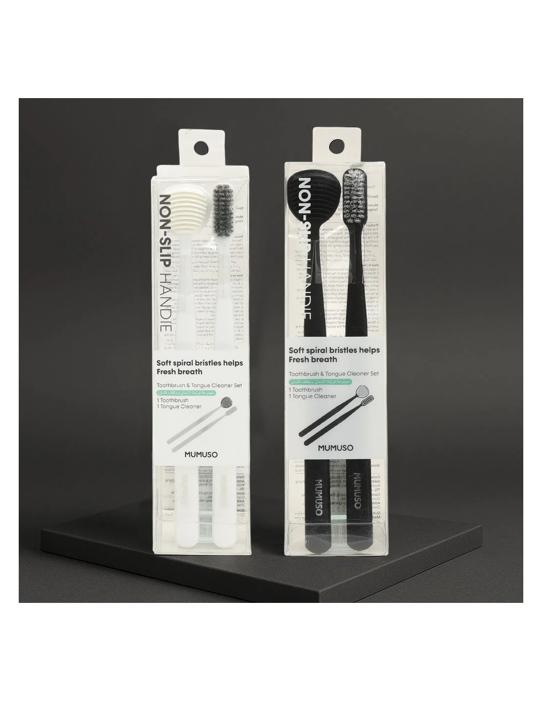 Découvrez notre set de soins bucco-dentaires, tout en blanc, associant une brosse à dents et un gratte langue de MUMUSO. Il sont conçus avec des matériaux résistant, durable, flexible pour un nettoyage efficace. Cette routine de soin pour une hygiène buccale complète et rafraîchissante.