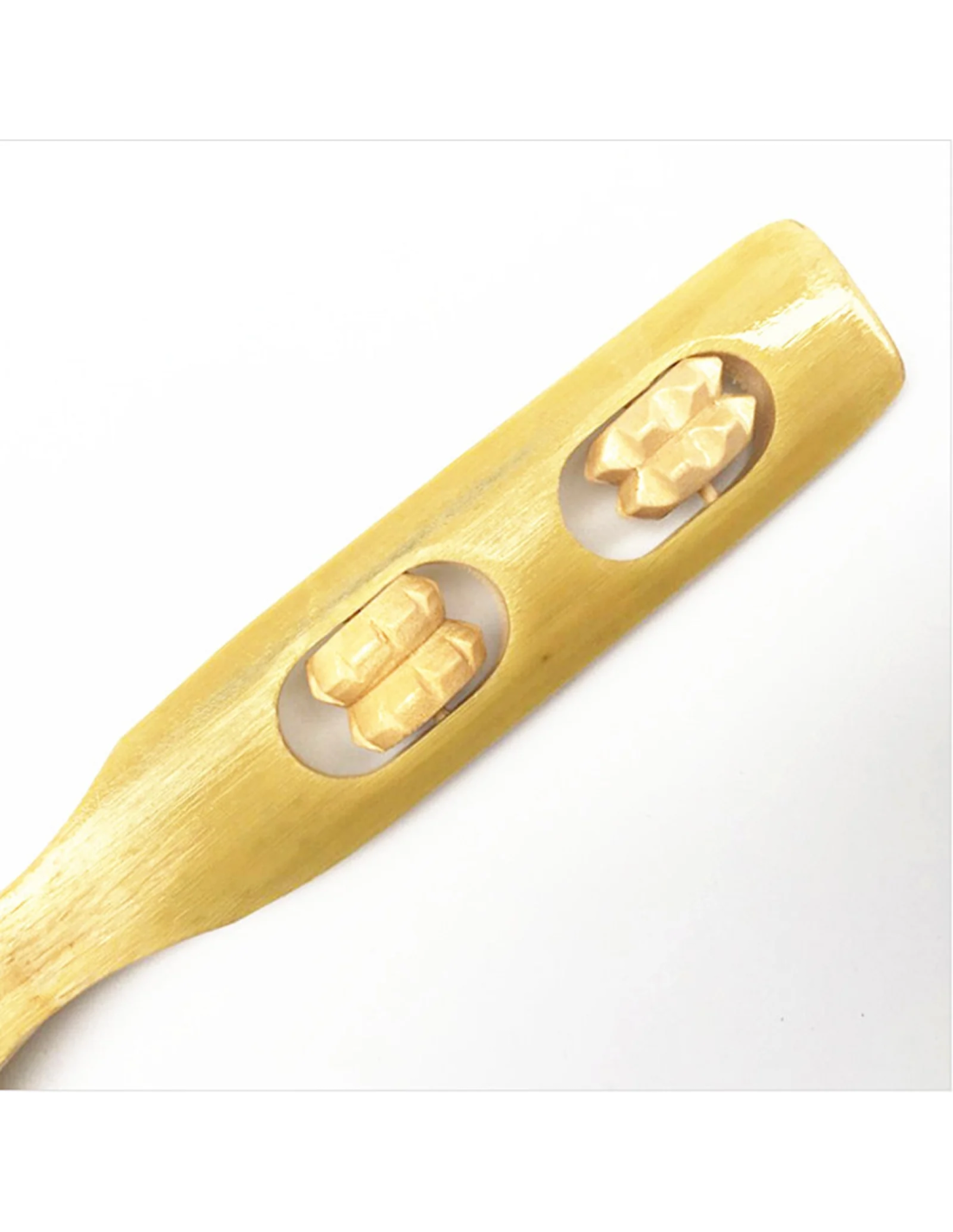 Conçu pour ceux qui souhaitent prendre soin de leur corps au quotidien, cet accessoire ingénieux vous permet de masser les zones difficiles d’accès sans effort. D’un côté, une tête en forme de main recourbé avec des picots souples reproduit les gestes d’un massage traditionnel ou plus précisément un grattage pour stimuler la circulation et soulager les nœuds. De l’autre, deux larges rouleaux en bois procurent une sensation de roulement profond, idéal pour décontracter les muscles du dos, des épaules ou des jambes après une longue journée. Le manche long et ergonomique garantit une prise confortable et un contrôle total. Fabriqué en matériaux naturels et durables, il est votre allié autonomie pour un bien-être accessible à tout moment.