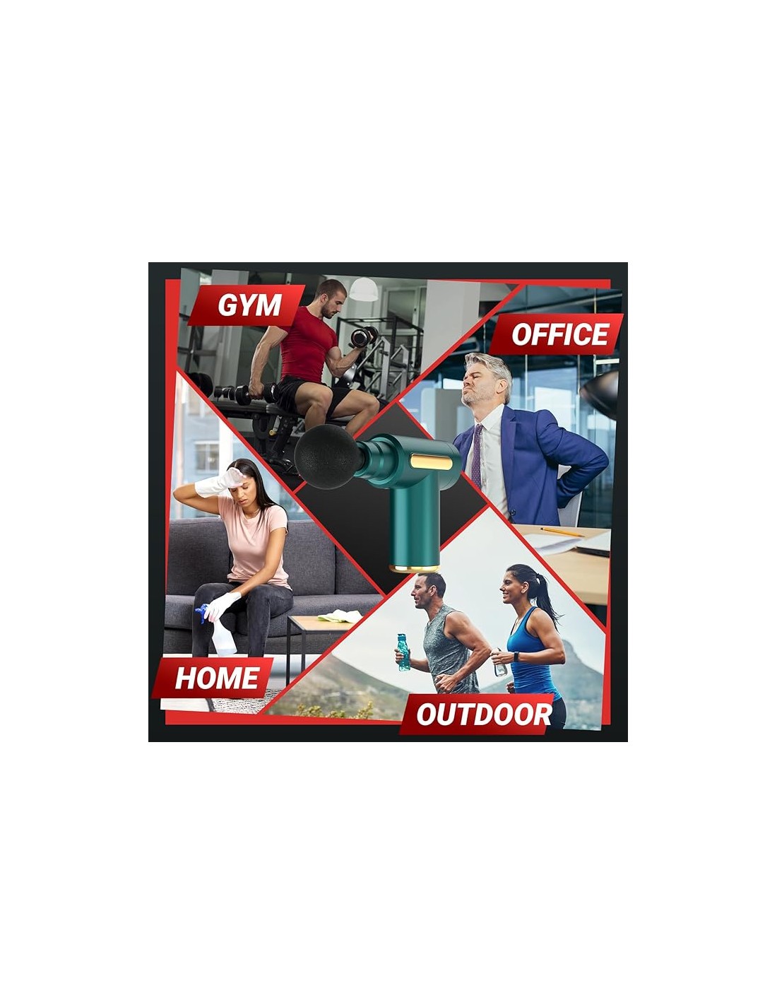 Fini les douleurs musculaires qui traînent après le sport ou une longue journée de travail. Ce mini pistolet de massage vert est conçu pour vous offrir un soulagement rapide et efficace, à la maison, au bureau ou en déplacement.