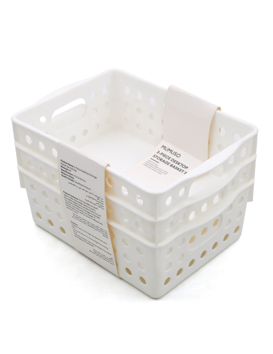 Organisez votre espace de travail avec légèreté et style ! Ce set de 3 paniers blancs au design aéré et aux poignées pratiques offre une solution de rangement ventilée et mobile pour tous vos essentiels.