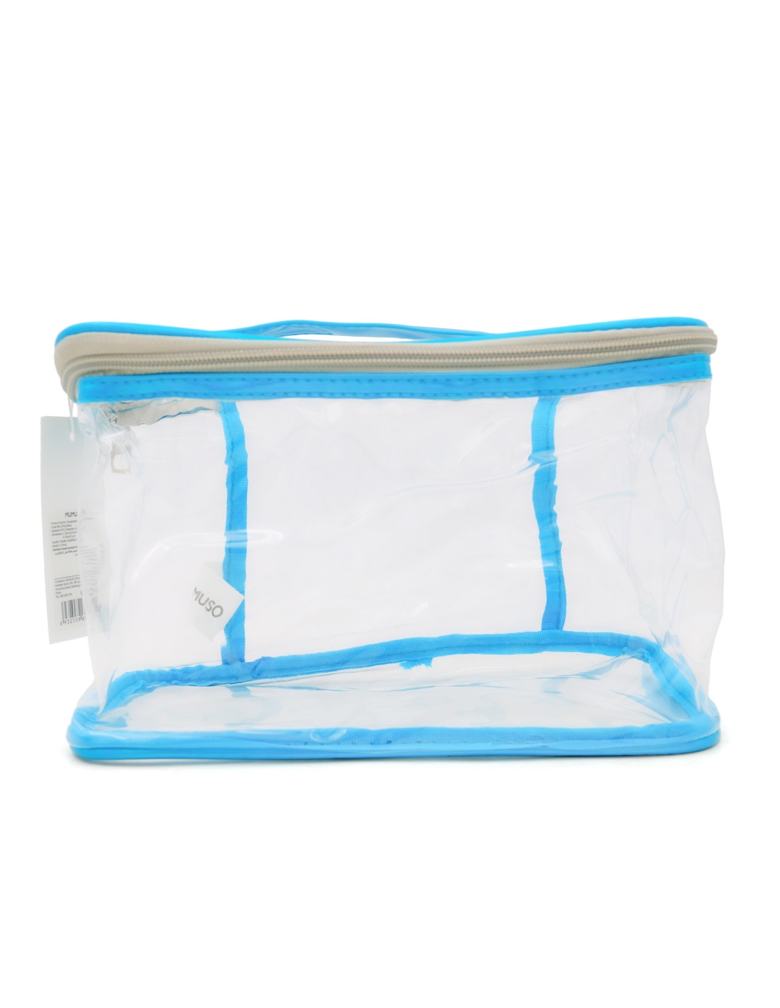Maîtrisez votre organisation beauté avec ce Set de 3 Trousses de Toilette Transparentes aux finitions Laser Bleu. Ce kit pratique et esthétique vous permet de trier et transporter vos cosmétiques, maquillage et accessoires en un clin d'œil grâce à leurs parois transparentes. L'ensemble comprend :